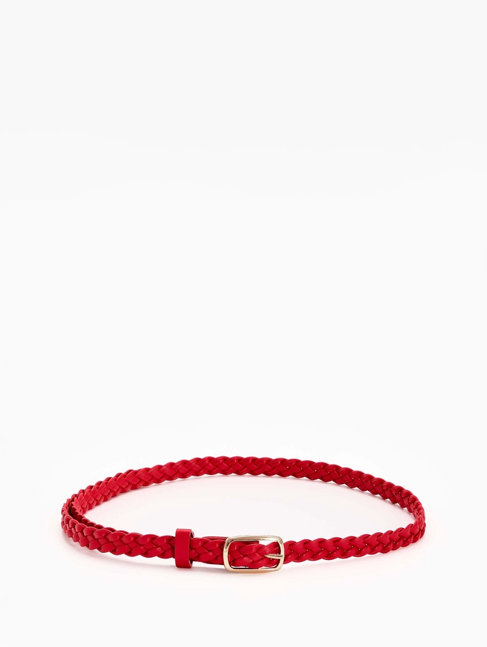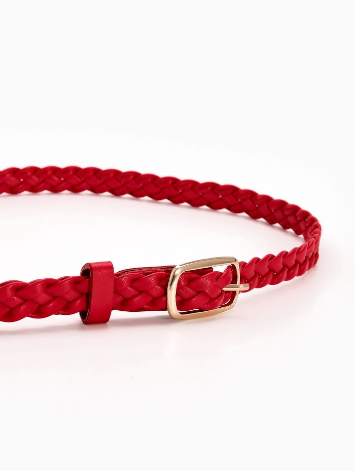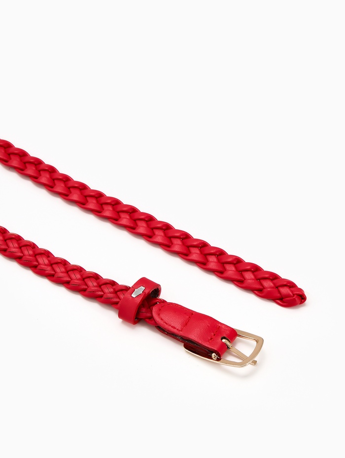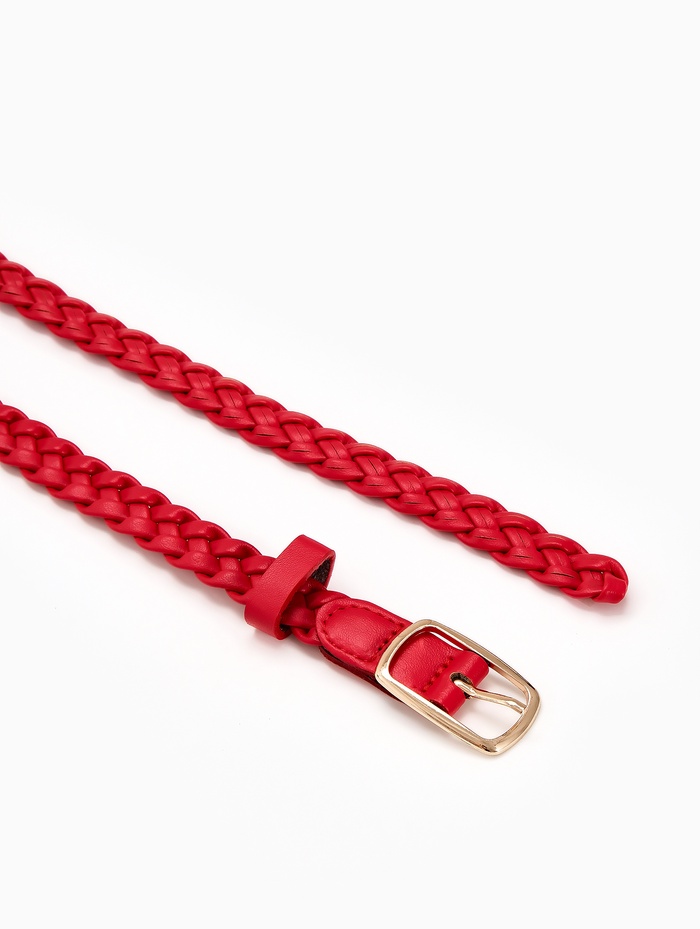 Ремень женский плетёный, 110×1.8 см, пряжка металл, золотистая, красный