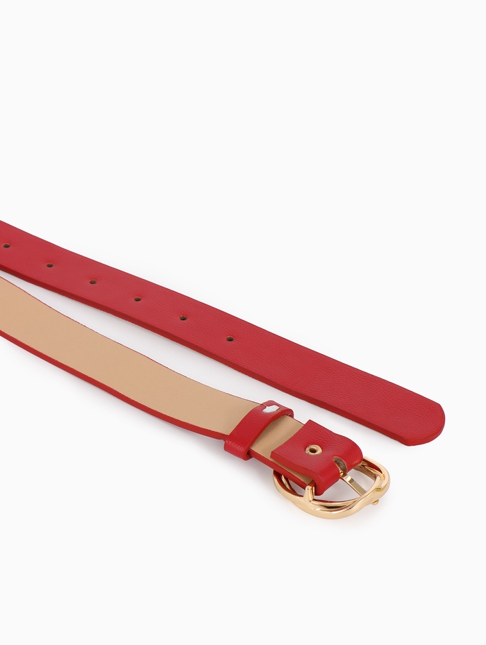 Красный ремень с золотистой пряжкой — акцент, который превращает простой наряд в выразительный. Этот женский аксессуар подходит для джинсов, платьев и классических брюк, добавляя уверенности в повседневном стиле.