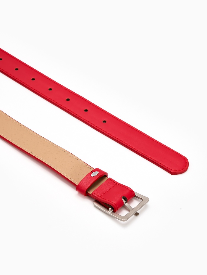 Красный ремень с матовой серебряной пряжкой создает смелый акцент в вашем гардеробе. Насыщенный цвет привлекает внимание, а лаконичный дизайн сохраняет универсальность. Ширина 3 см мягко подчеркивает талию, сохраняя удобство при повседневной носке.