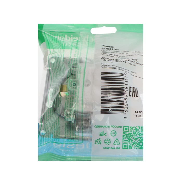 Технические характеристики Розетка SE ATLASDESIGN ART, 16 А, 250 В, встраиваемая, с з/к, шторки, IP20, белая, ATN200145