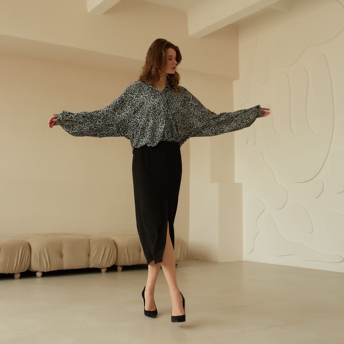 Рубашка женская MINAKU: Silk pleasure цвет чёрный/белый, размер 44