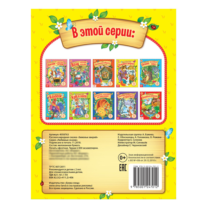 Технические характеристики Русская народная сказка «Зимовье зверей», 12 стр.