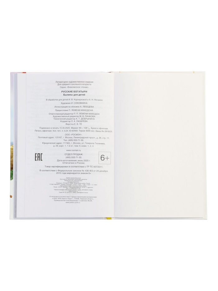 Технические характеристики Русские богатыри. Былины для детей, Карнаухова И.В. (ВЧ)