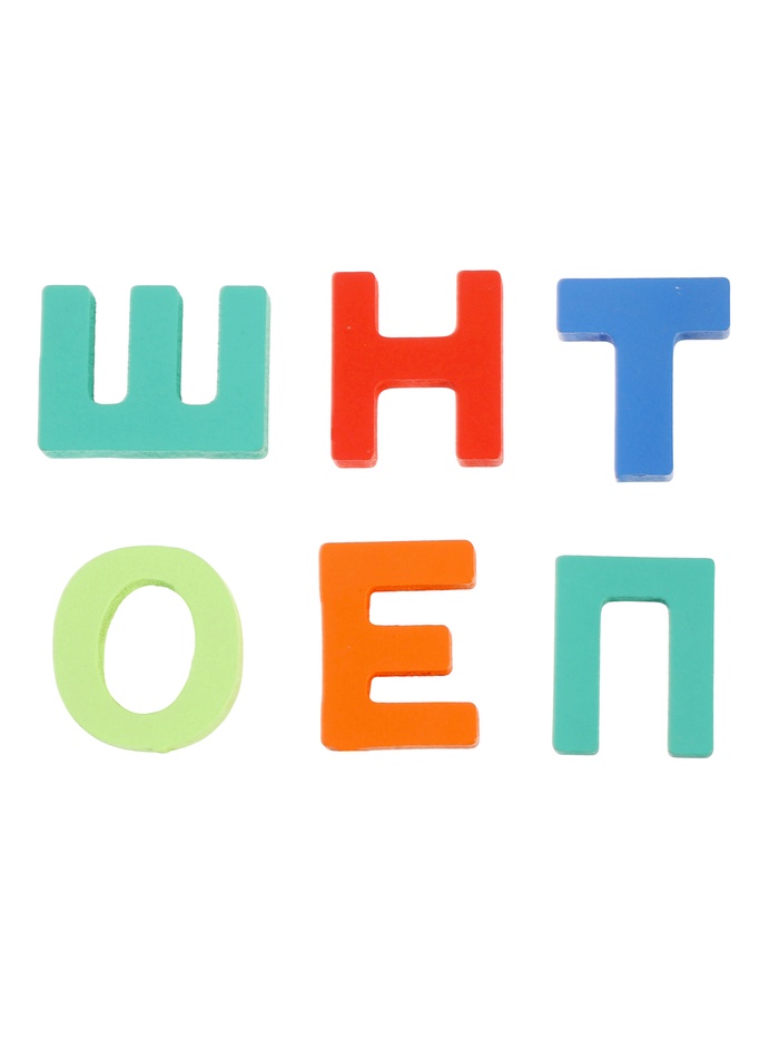 - Чёткие формы букв: удобно сопоставлять контур детали с выемкой на планшете;