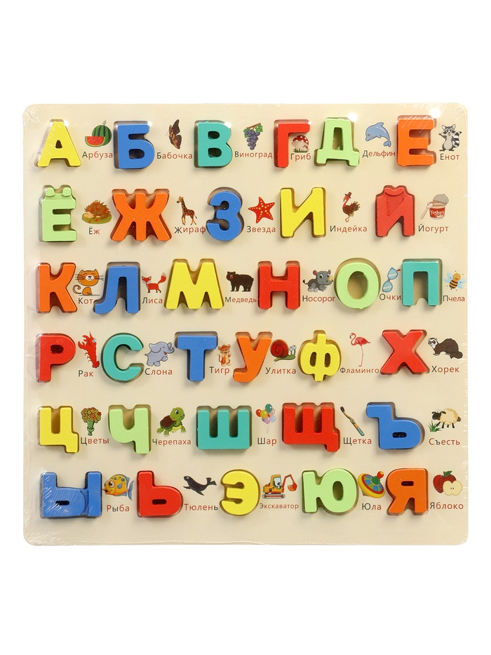 Деревянный пазл-вкладыш с русским алфавитом помогает ребёнку познакомиться с буквами через простые и понятные действия. Ребёнок берёт литеру, пробует разные позиции, сравнивает контуры и находит её место на планшете. Такой спокойный формат делает обучение родным языком менее напряжённым и более осознанным — ребёнок видит результат своих действий сразу.