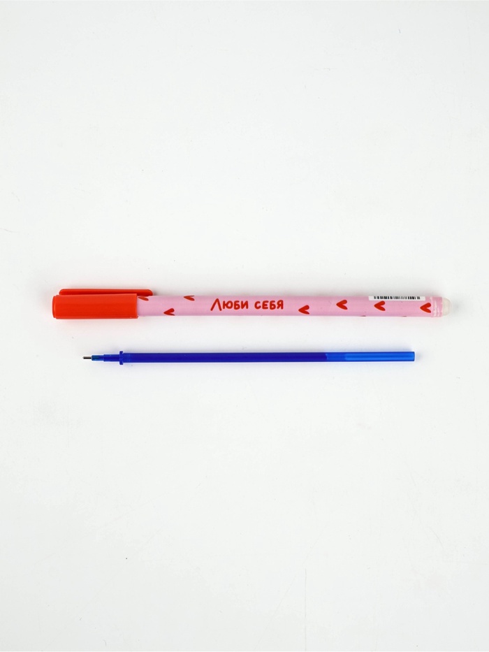 Ручка пластик пиши-стирай с колпачком "Люби себя", синяя паста, гелевая 0,5 мм