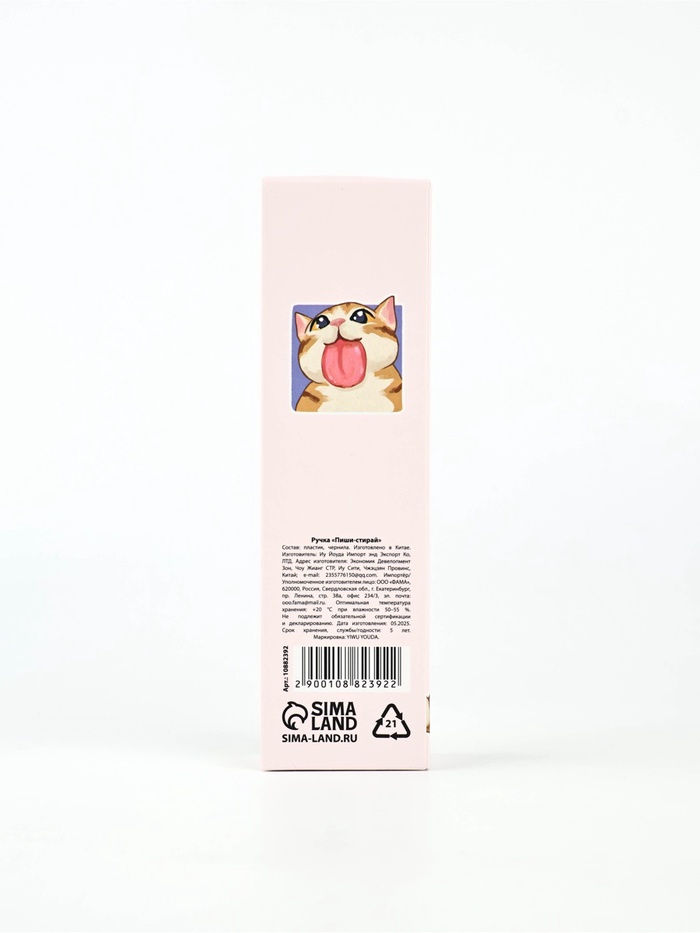 Ручка пластик пиши-стирай с колпачком "Не ручки, а лапки", синяя паста, гелевая 0,5 мм