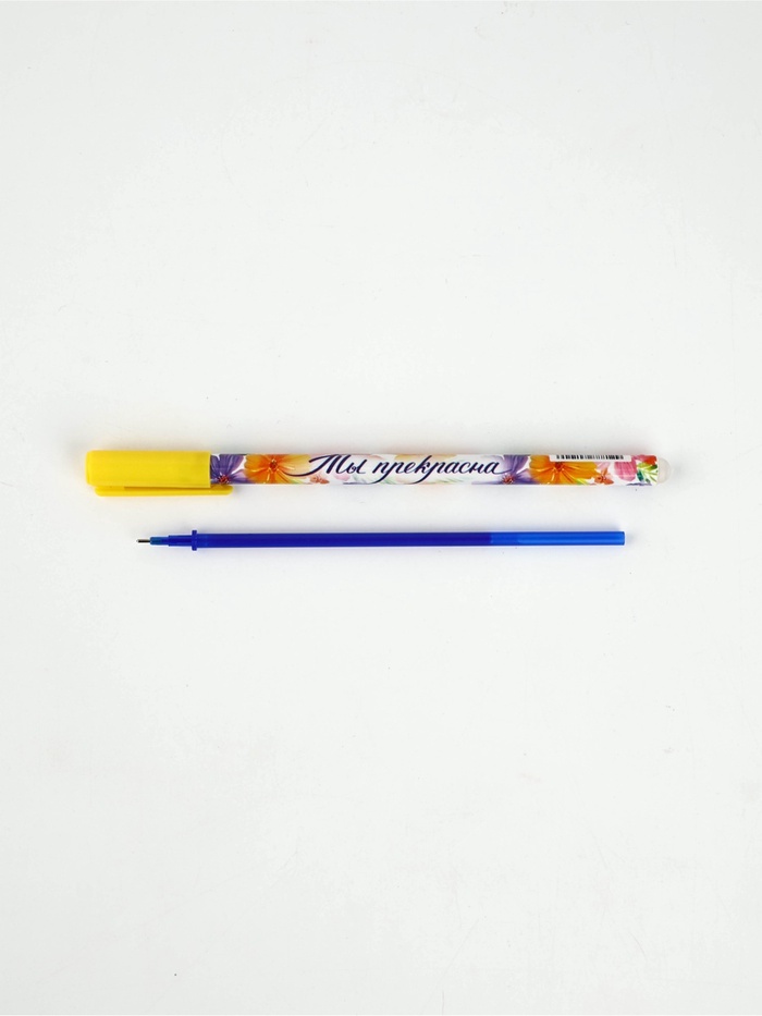 Ручка пластик пиши-стирай с колпачком "Ты прекрасна", синяя паста, гелевая 0,5 мм