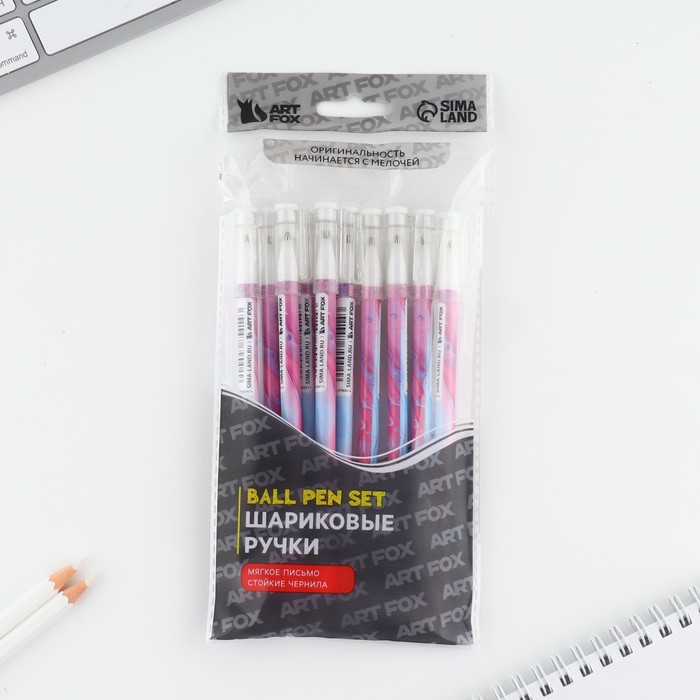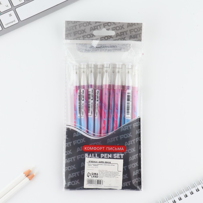 Ручка шариковая синяя паста 0.5 мм с колпачком «Неон» пластик