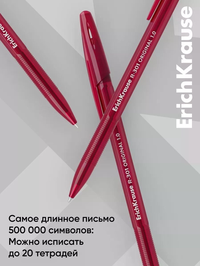 Ручка шариковая ErichKrause R=301 Stick Original, узел 1 мм, красная