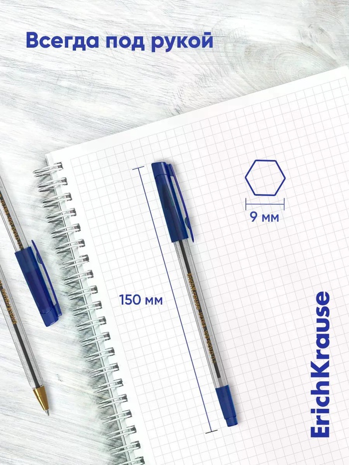 Ручка шариковая ErichKrause ULTRA-100 Gold Stick Classic, 0.5, Super Glide, синяя