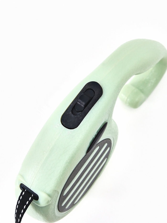 - Плавное торможение и возврат: механизм равномерно сматывает ленту без рывков. Хозяин может быстро укоротить поводок в любой момент — например, при встрече с другими собаками или на проезжей части.