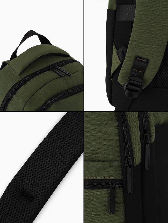 Технические характеристики Рюкзак, 2 отделения, 5 карманов, водонепроницаемое дно, 26×14×39 см, зелёный