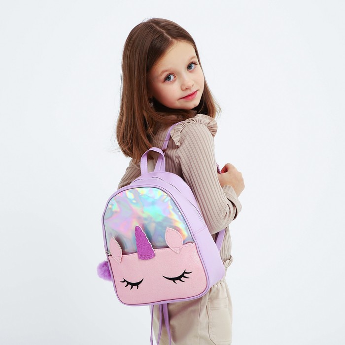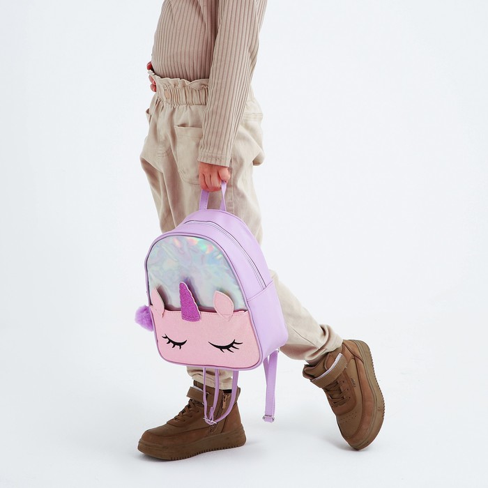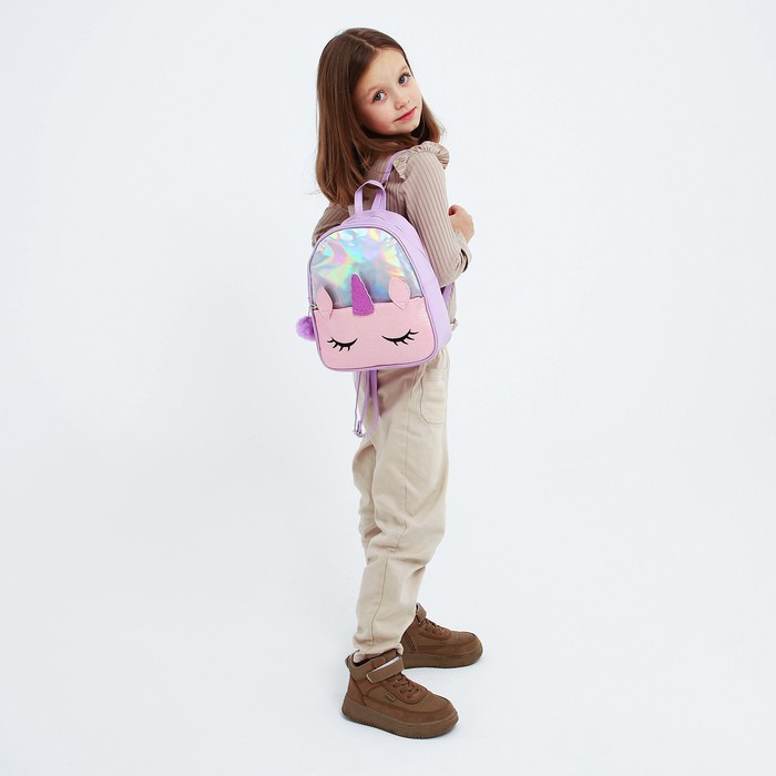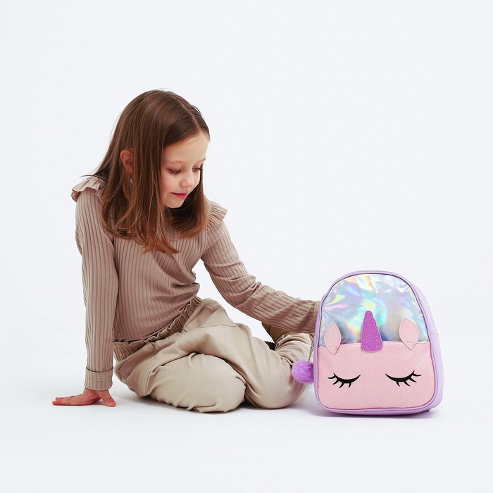 Рюкзак детский для девочки с блестящим карманом «Единорог», 27×23×10 см