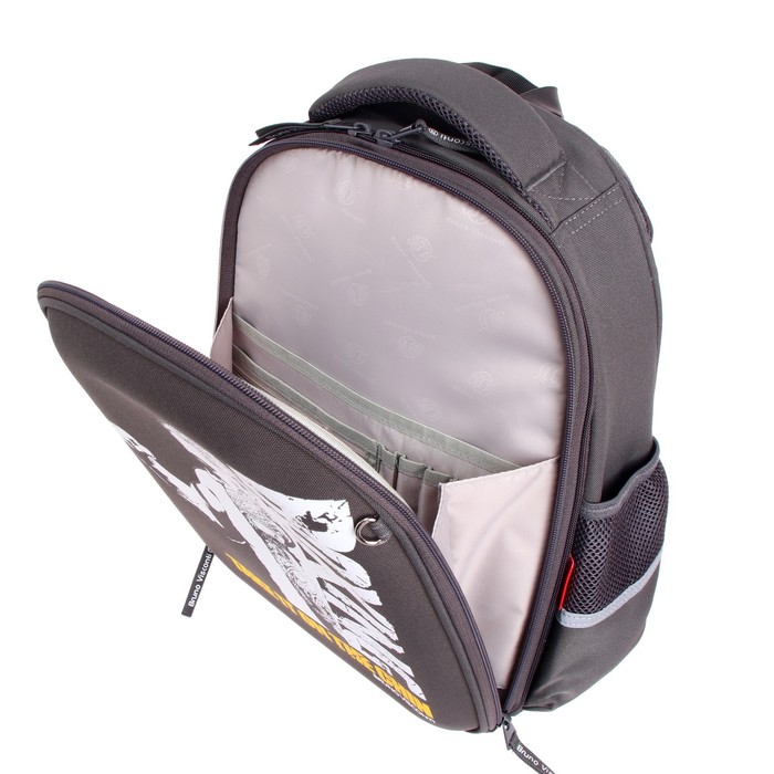 Рюкзак каркасный 38 х 30 х 20 см, + пенал, Bruno Visconti "Бокс" тёмно-серый