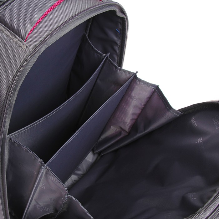Формованный ранец для начальной школы. Два вместительных отделения, с возможностью раздвижки в ширину за счет дополнительной вставки. «Плавающие» перегородки для тетрадей и учебников, удобный карман-органайзер. Спинка с анатомическими элементами, мягкие, регулируемые по длине лямки. Система регулировки лямок по росту ребенка. Удобная ручка для переноски и дополнительная петлевая ручка. Светоотражающие элементы на лямках и корпусе ранца.