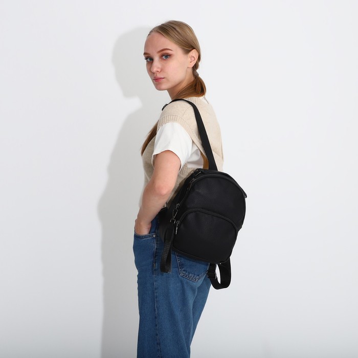 Рюкзак-мини женский из искусственной кожи на молнии, 1 карман, цвет чёрный