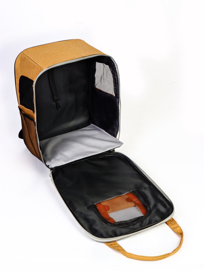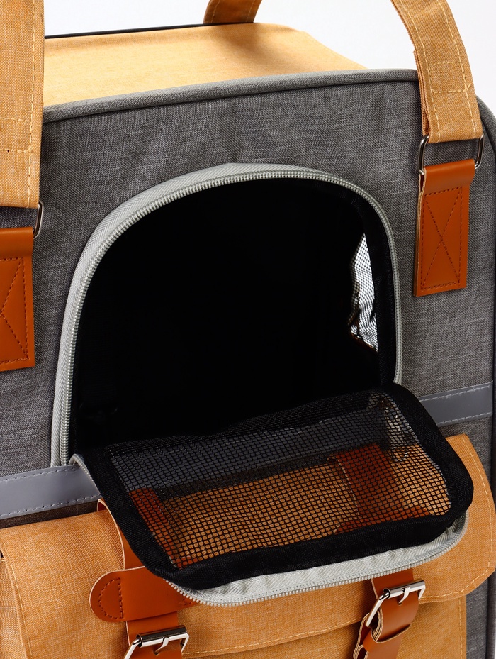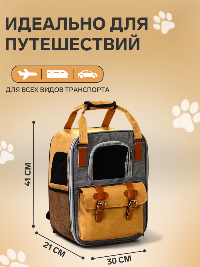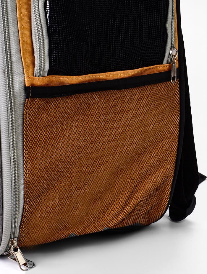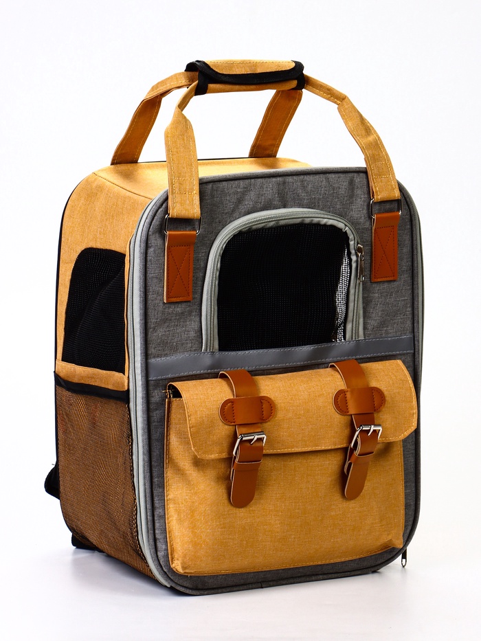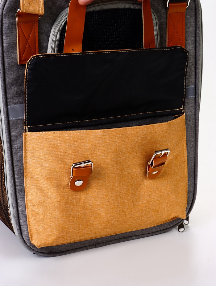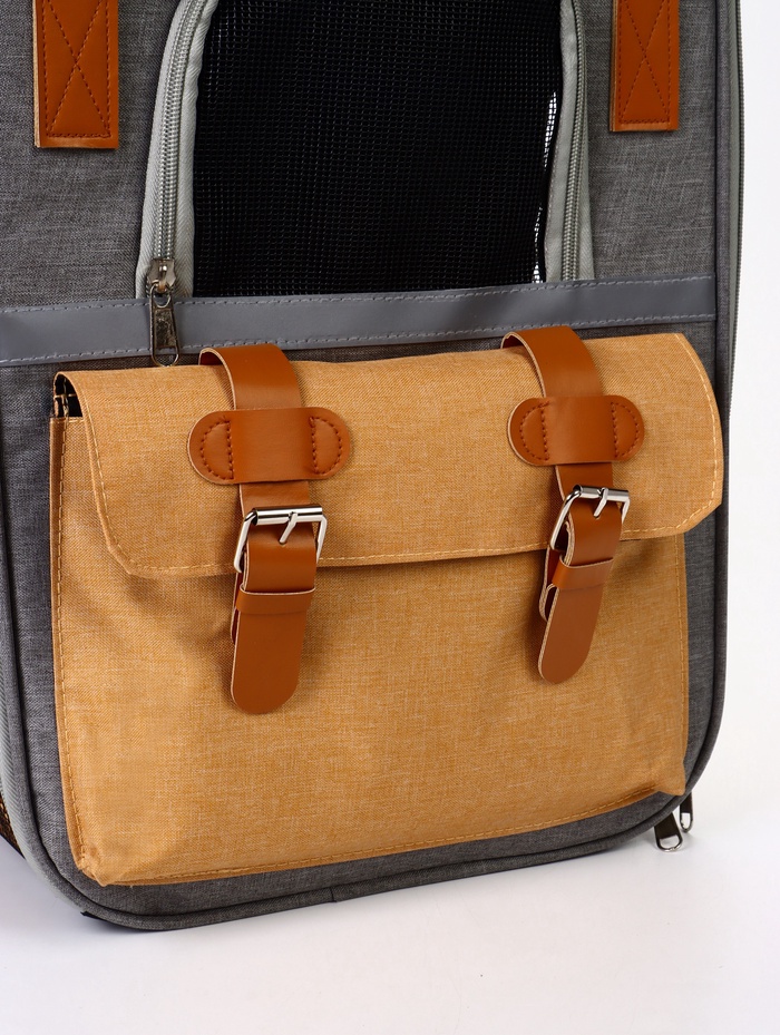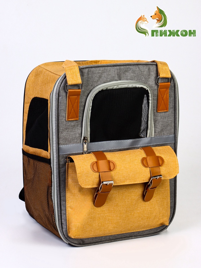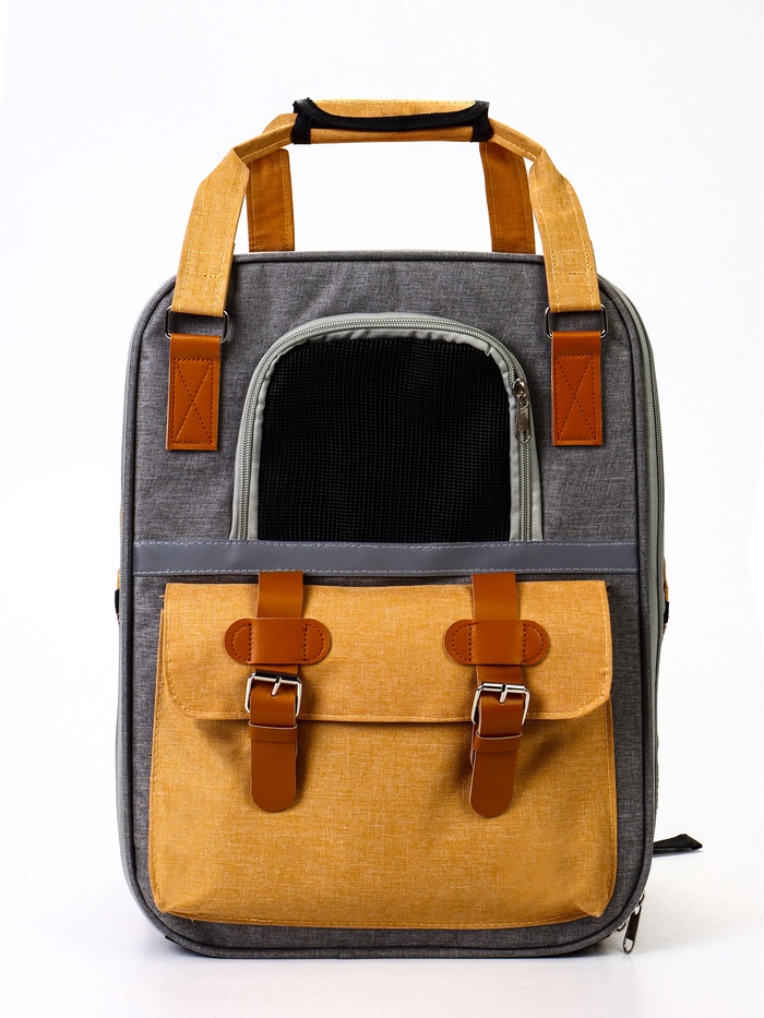 Рюкзак-переноска для кошек и собак, 30×21×41 см, серый, жёлтый