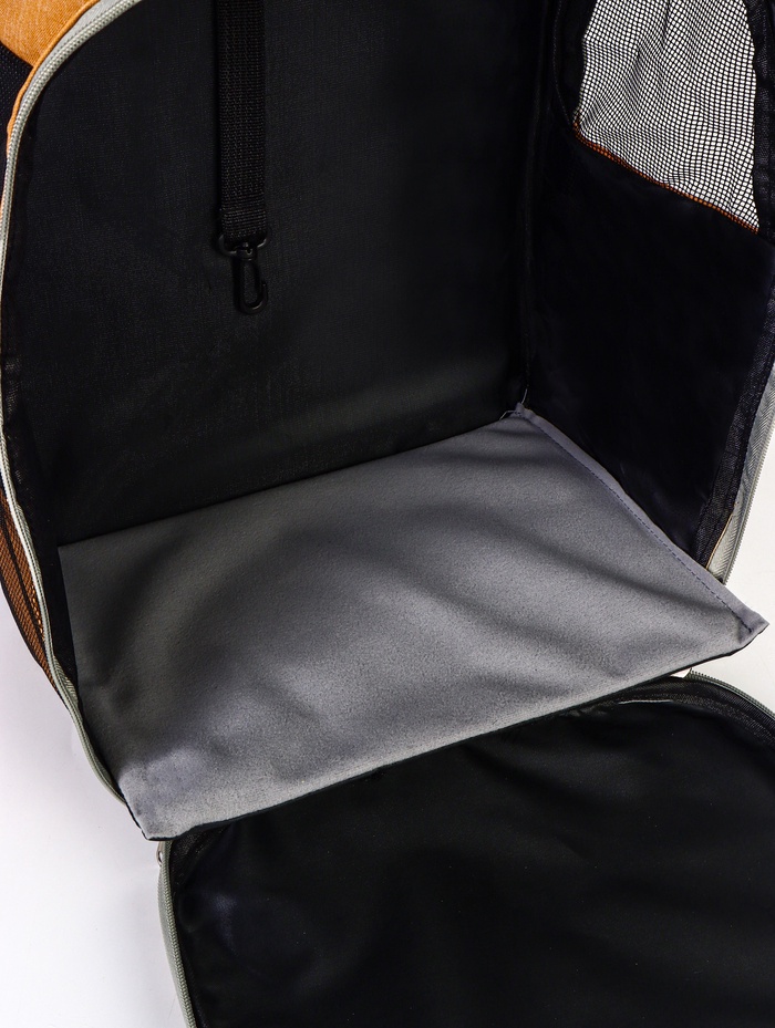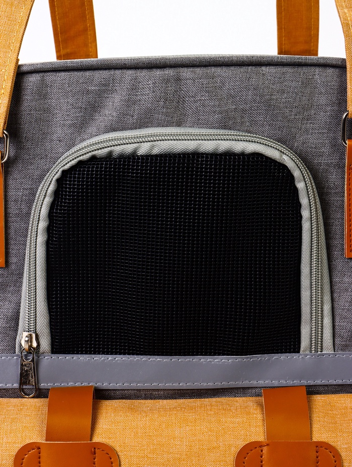 - Сетка и карманы: панель из прочной сетки обеспечивает обзор и циркуляцию воздуха: животное видит происходящее, не паникует и дышит свободно. Карман — для документов, поводка или влажных салфеток. Всё под рукой, но не в руках.