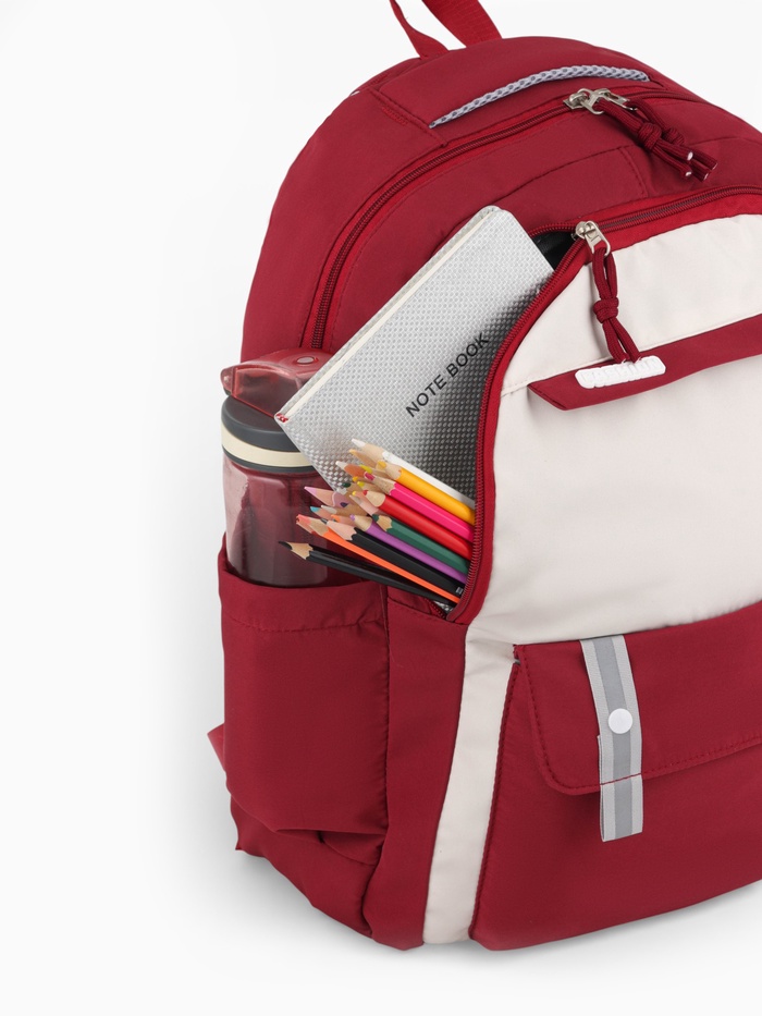 Этот бордовый школьный рюкзак создан для учениц средних и старших классов, которые ценят стиль, порядок и комфорт каждый учебный день. Его продуманная организация пространства и эргономичная конструкция делают переноску учебных принадлежностей лёгкой, а образ — завершённым.