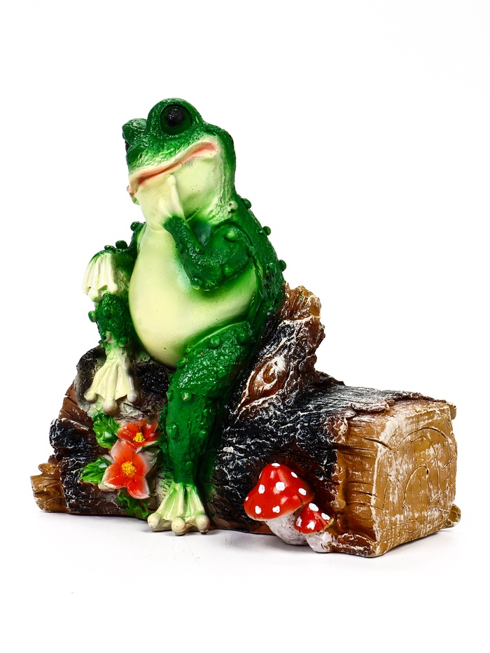 - Цельная композиция: лягушка, бревно и небольшие детали образуют завершённую сцену, которая не требует дополнительных декоративных элементов рядом.