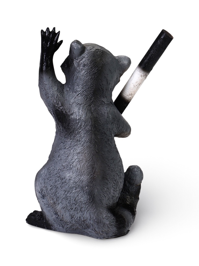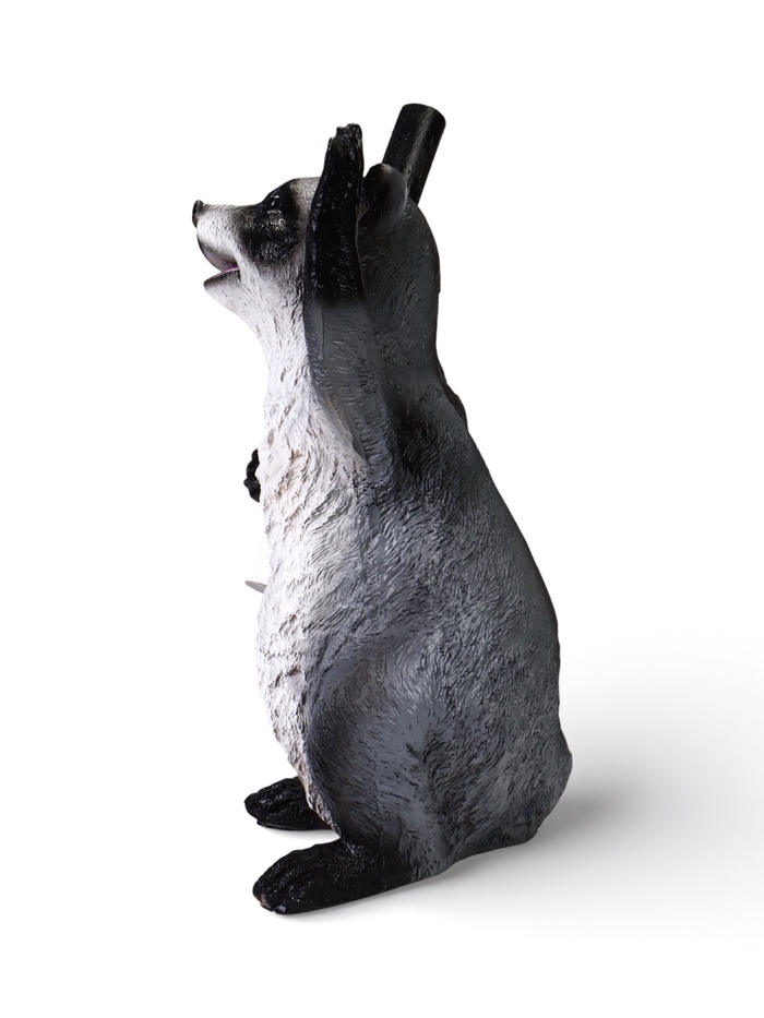 - Сюжетный декор для сада: образ «енота-регулировщика» добавляет интереса, а не просто украшает участок. Фигура енота — законченный персонаж с характером.
