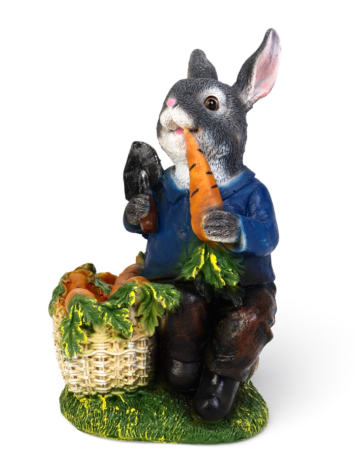 Садовая фигура «Зайчик с лопатой и морковкой» из полистоуна, 15×13×28 см