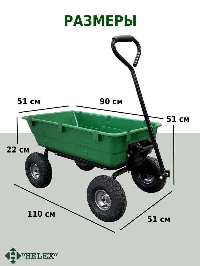 Технические характеристики Тележка-самосвал садовая G202, 4-колесная, зелёная