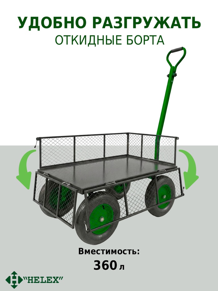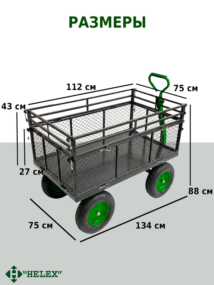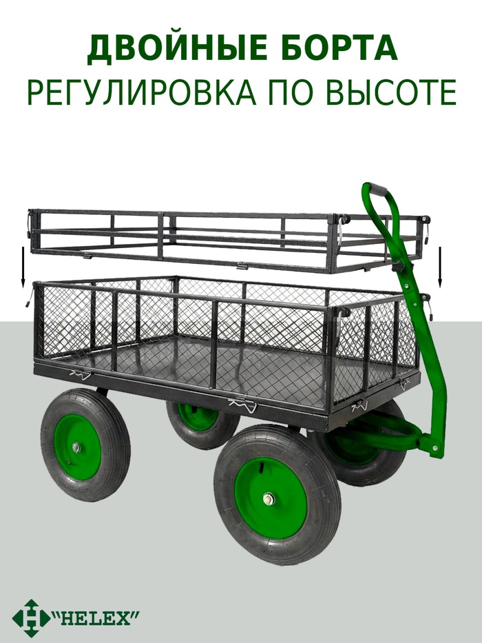 Технические характеристики Тележка садовая G204, 4-колесная, чёрно-зелёная