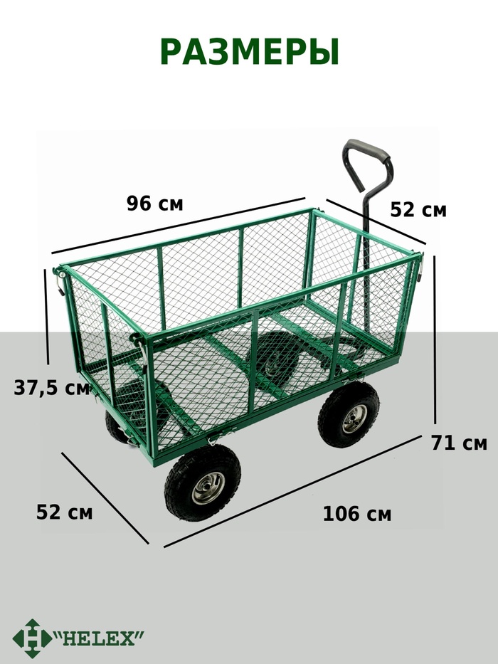 Технические характеристики Тележка садовая G203, 4-колесная, зелёная