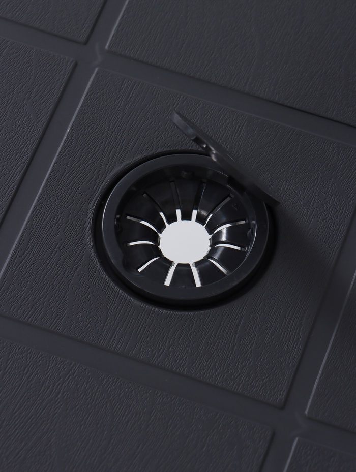 - Графитовый оттенок: тёмный цвет маскирует мелкие загрязнения, капли и пыль. Поверхность остаётся опрятной долгое время.