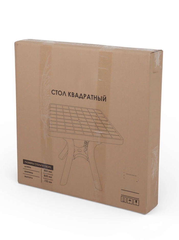 - Компактные габариты: столешница 80×80 см рассчитана на компанию до 4-х человек. Квадратная форма компактно размещается в беседке.