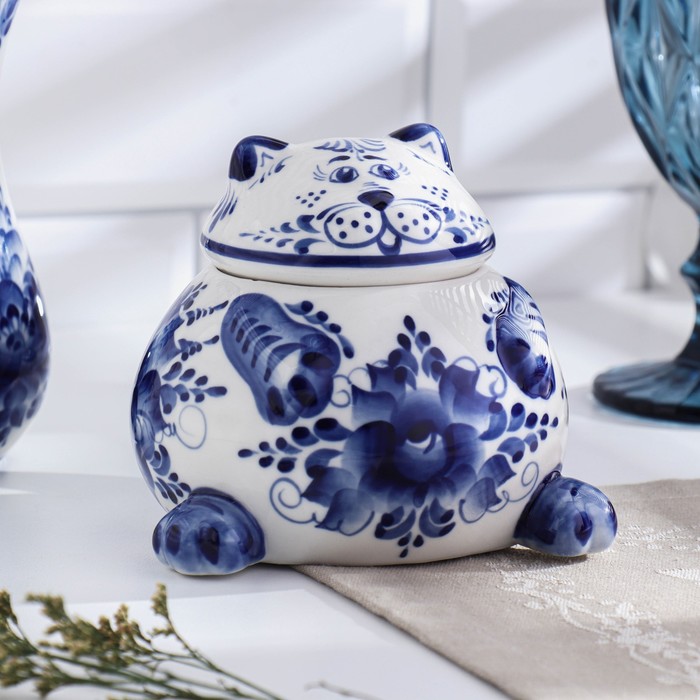 Сахарница фарфор «Кот», гжель