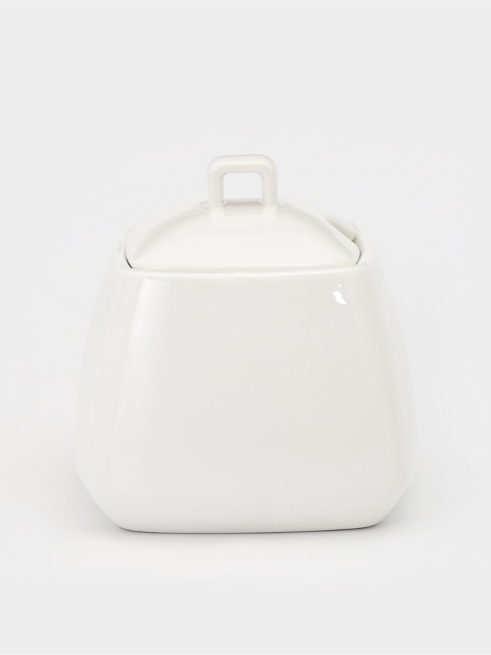 Бочонок удобно лежит в руке при отсутствии ручек — форма сама по себе эргономична. Плотный фарфор сохраняет содержимое сухим, не впитывает влагу и посторонние запахи. Гладкая поверхность легко очищается от сладких следов, а широкое горлышко позволяет использовать ложку любого размера. Сахарница подойдёт не только для сахара, но и для мёда, варенья или джема.