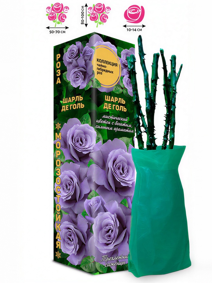 Технические характеристики Саженец Роза чайно - гибридная «Шарль Де Голь», 1 шт., «Золотая Сотка Алтая», Весна 2026