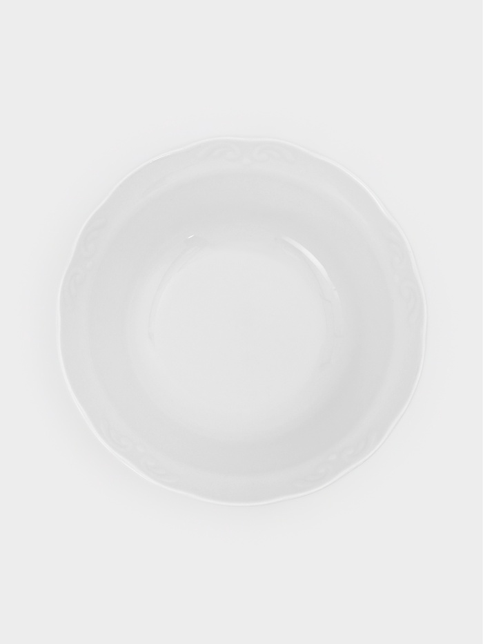 Фарфоровый салатник поддерживает настроение во время семейного ужина. Белоснежная поверхность оттеняет яркость ингредиентов, делая блюдо аппетитнее. Рельефный узор на стенках приятен пальцам и добавляет изделию изящества. Посуда из добрушского фарфора служит долго, становясь надежной частью кухонного обихода.