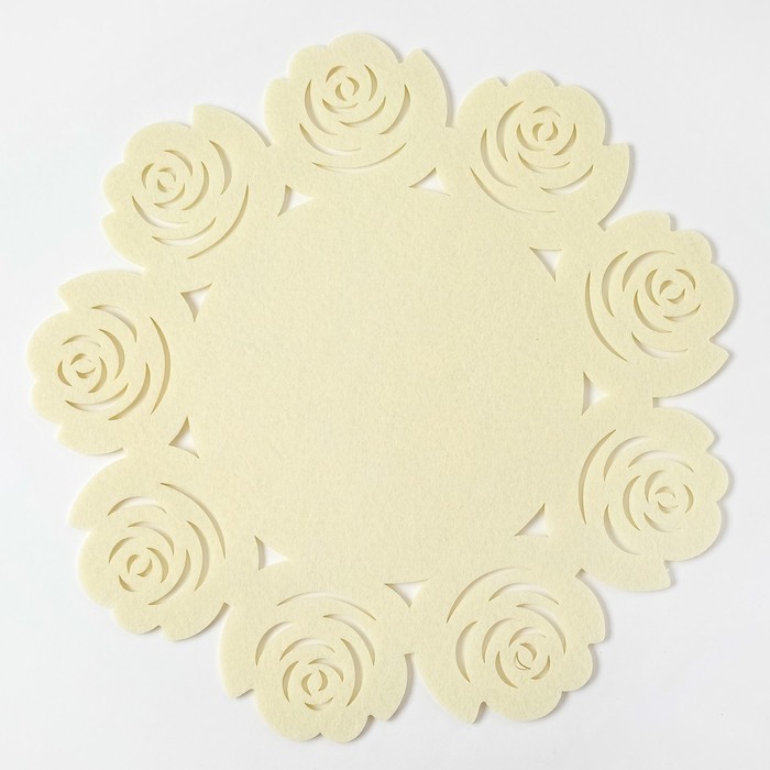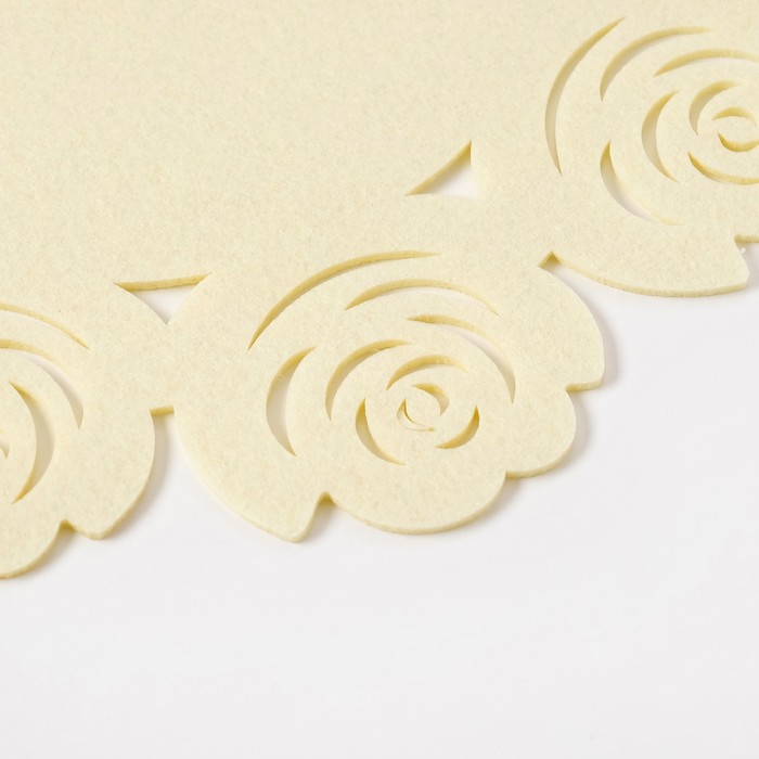 Салфетка декоративная Доляна"Цветы" цвет молочный,d 30 см, 100% п/э, фетр