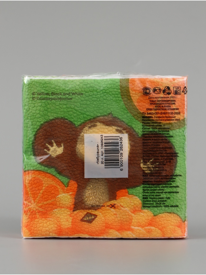 Салфетки бумажные, 24×24 см, 20 штук, «Чебурашка»