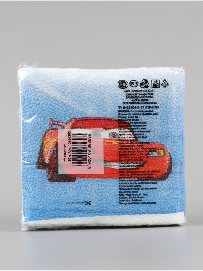 Салфетки бумажные «Машинка», 24х24 см, 20 шт