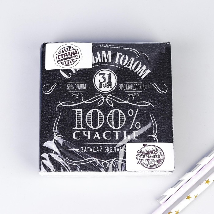 Салфетки бумажные однослойные «100% счастье», 24 х 24 см, набор 20 шт