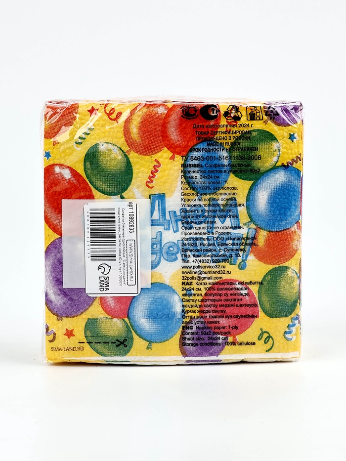 Салфетки бумажные однослойные «С днем рождения», воздушные шары, 24×24 см, 50 шт.