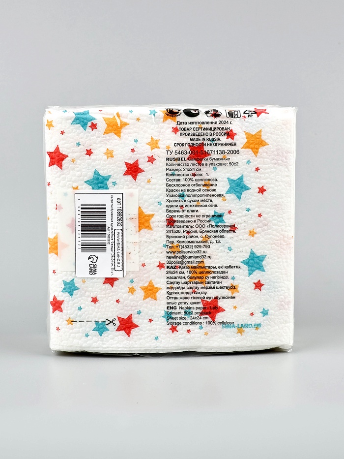 Салфетки бумажные однослойные «Звезды», 24×24 см, 50 шт.