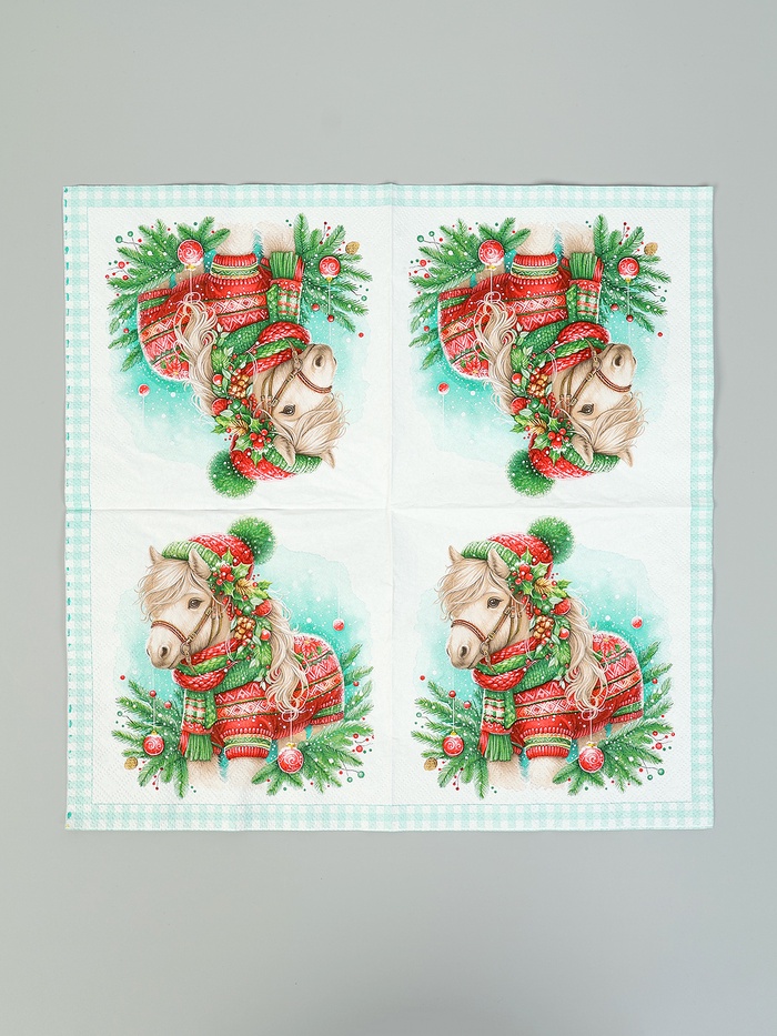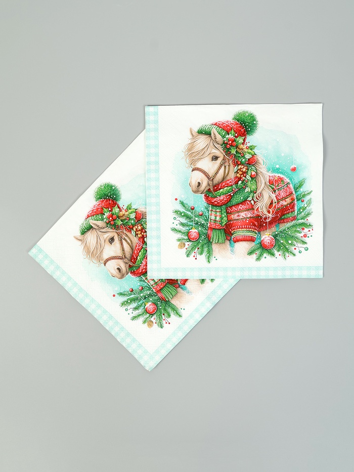 Салфетки бумажные трёхслойные «Новогодний пони», 33×33, 20 шт.