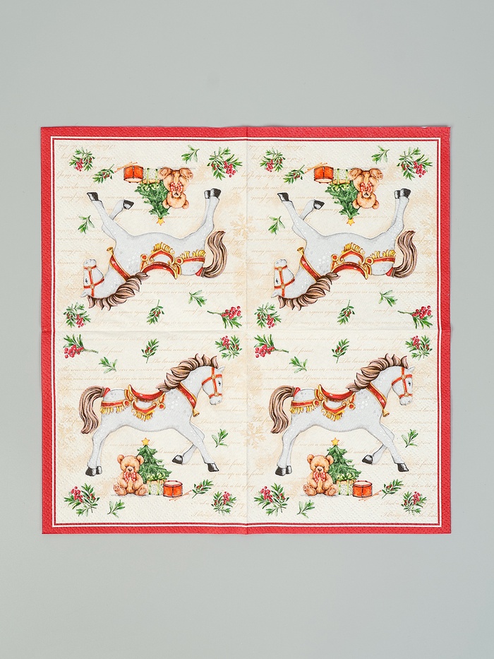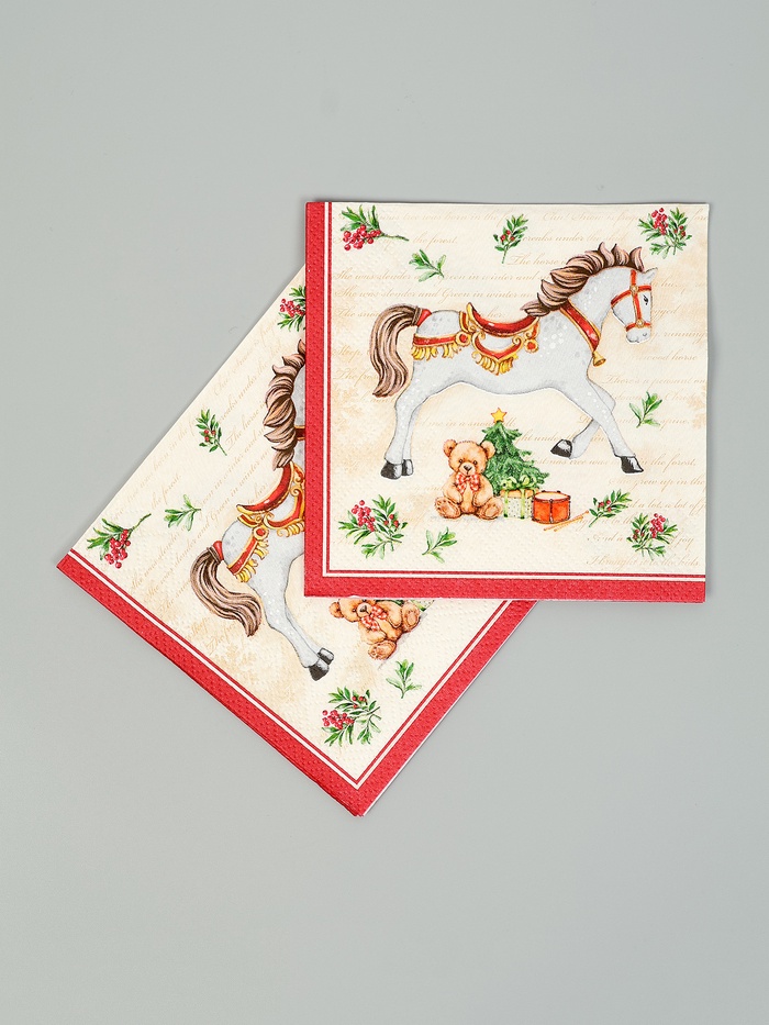 Салфетки бумажные трёхслойные «Новогодняя лошадка. Кремовый фон», 24×24, 25 шт.