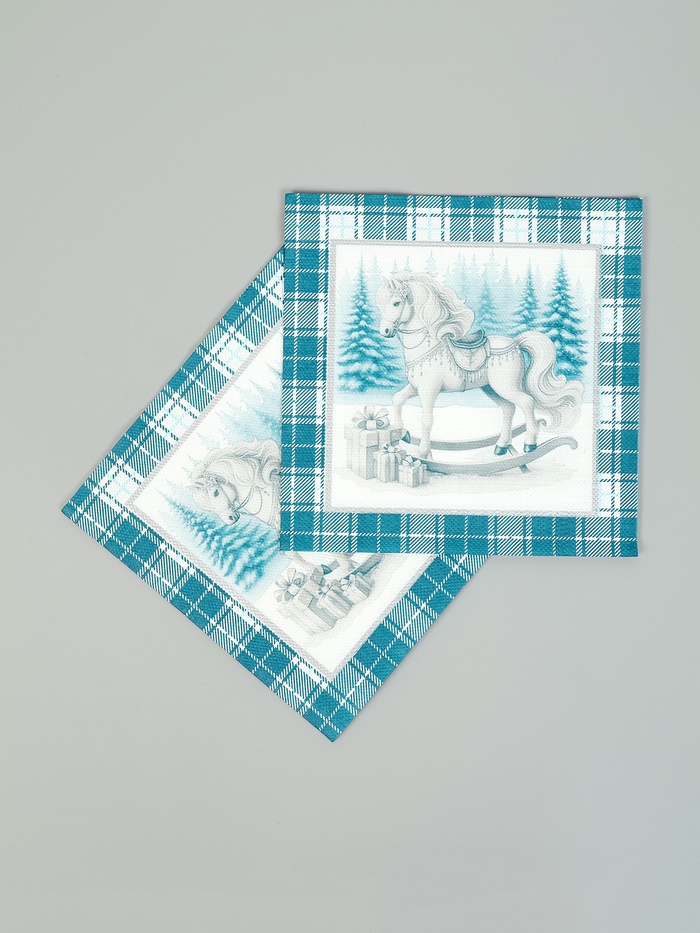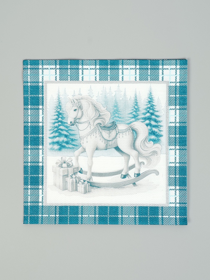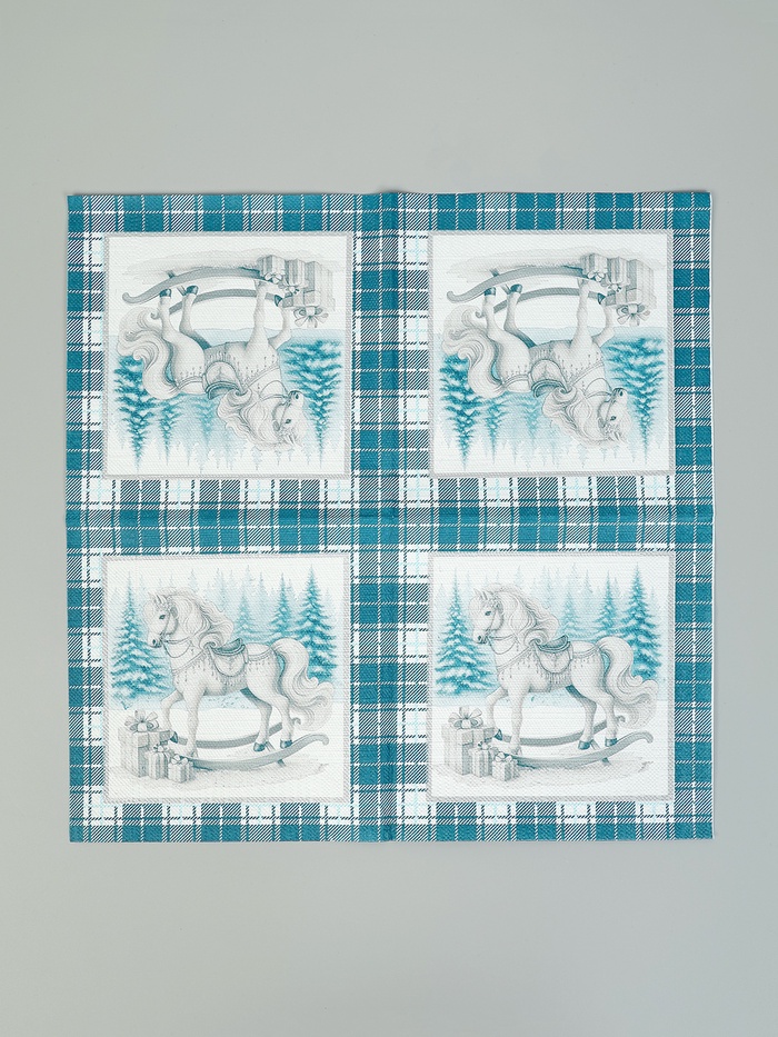 Салфетки бумажные трёхслойные «Скатерть с лошадью на зеленом», 33х33, 20 шт