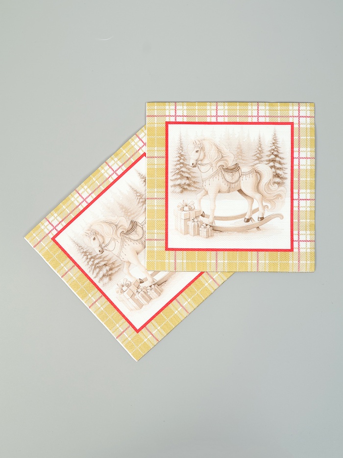 Салфетки бумажные трёхслойные «Скатерть с лошадью на золоте», 33х33, 20 шт