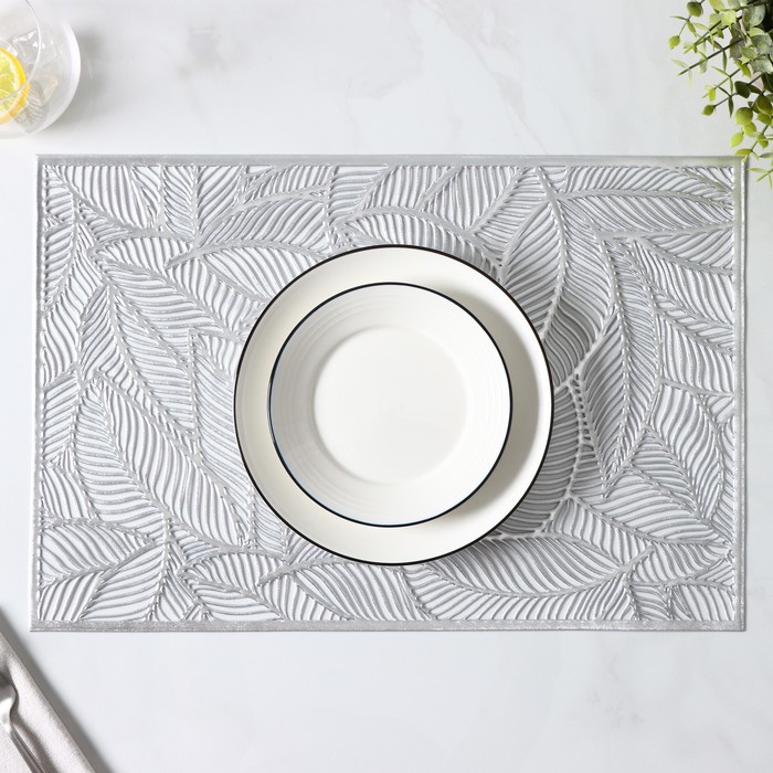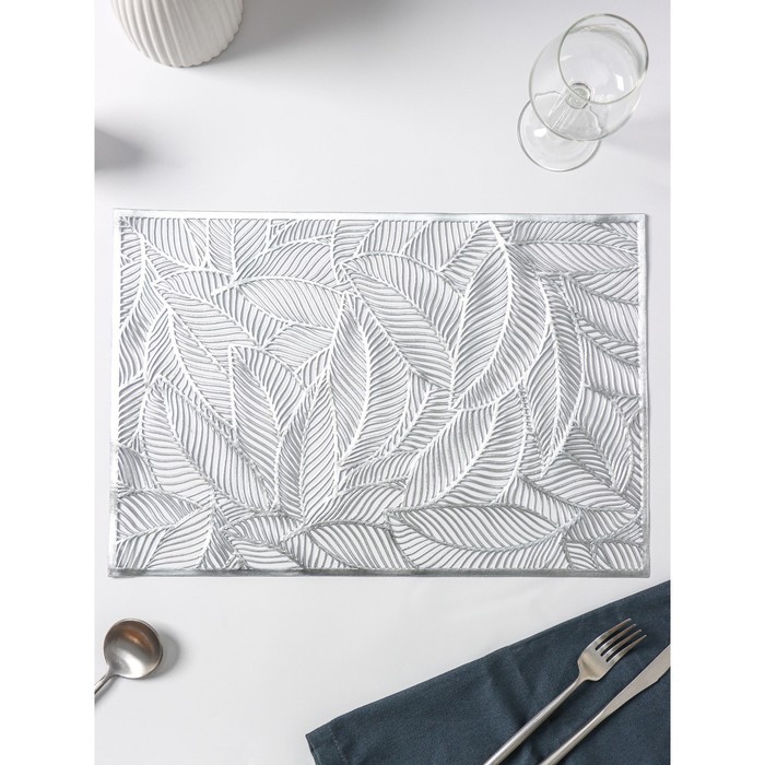 Салфетки сервировочные на стол Доляна «Листопад», 4 шт., 45×30 см, цвет серебряный
