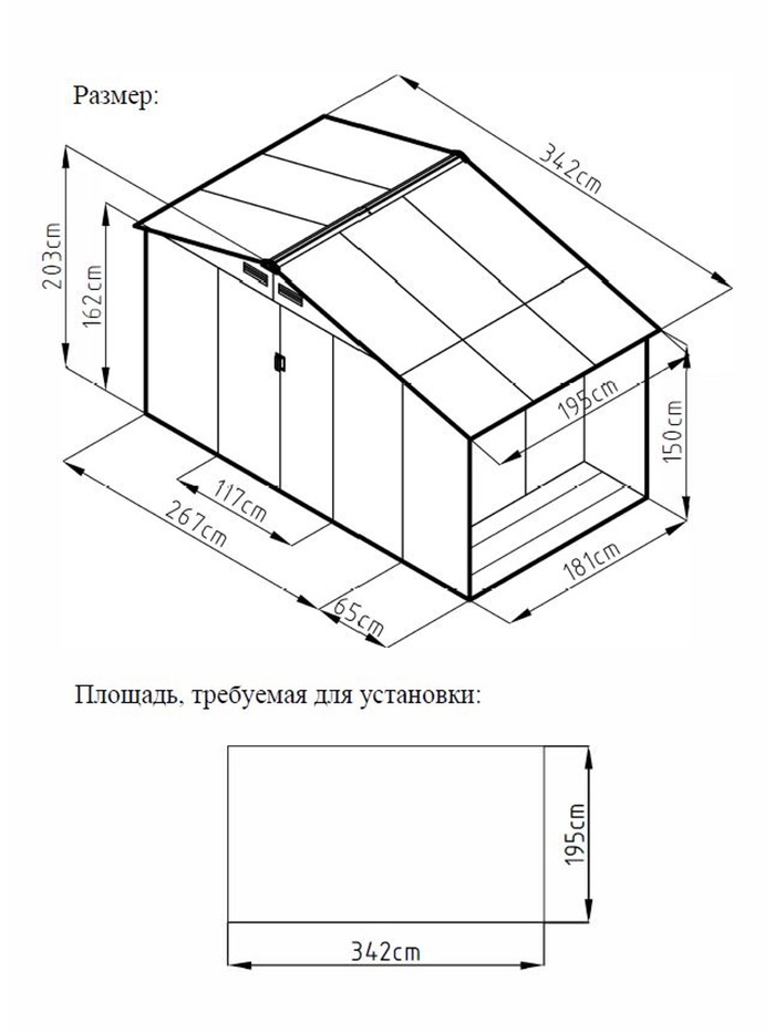 Технические характеристики Сарай WOTEX Storage-08-3, темно-серый с белым, 342х195х203 см