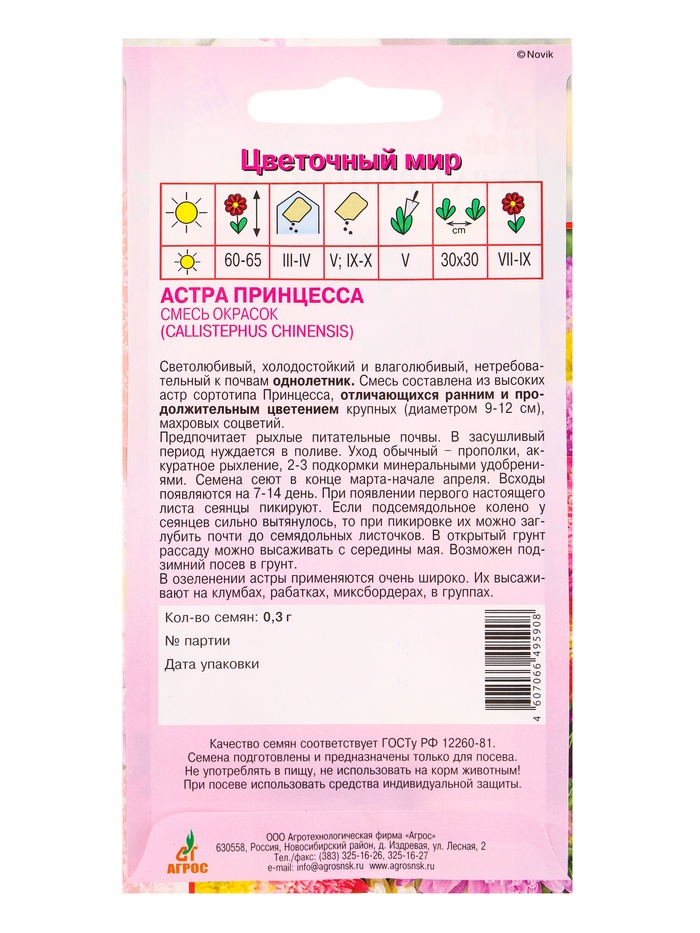 Семена Астра Принцесса 0,3 г