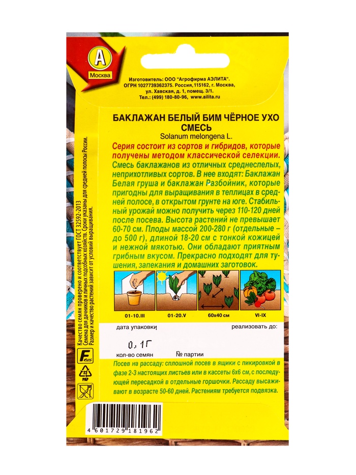 Семена Баклажан Белый бим черное ухо, смесь Профи-Аэлита, Ц/П,0,1 г